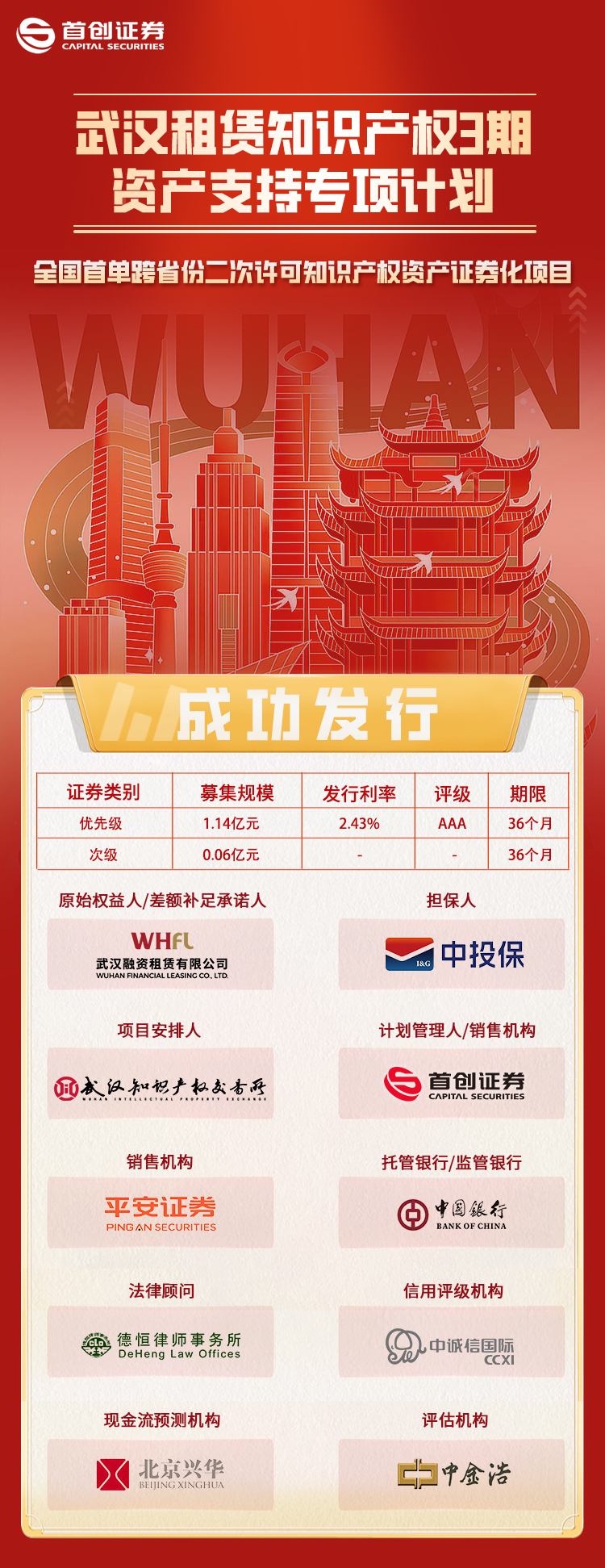 武漢融資租賃有限公司是經國家商務部、國家稅務局以商流通函【2014】384號文聯合審批確認的湖北省內資融資租賃試點企業。公司成立于2012年11月6日,于2019年12月進行國有股權變更,完成變更審批與更名登記,注冊地址為武漢東湖新技術開發區高新大道999號未來科技城海外人才大樓A座18樓1835室。